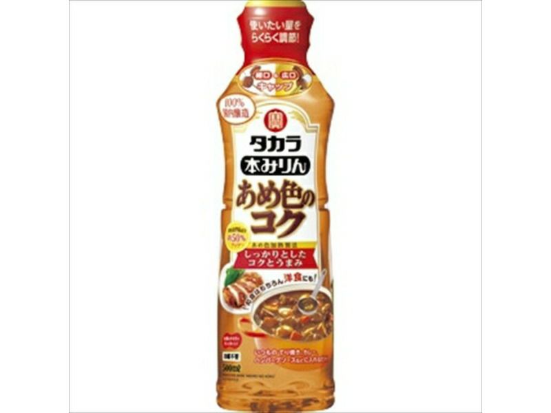 独自のあめ色加熱製法により、加熱コク味成分約50%アップ(当社本みりん比)でしっかりとしたコクとうまみを与える本みりん。いつもの和食はもちろん、洋食や中華も手軽にしっかりとした味わいに。
