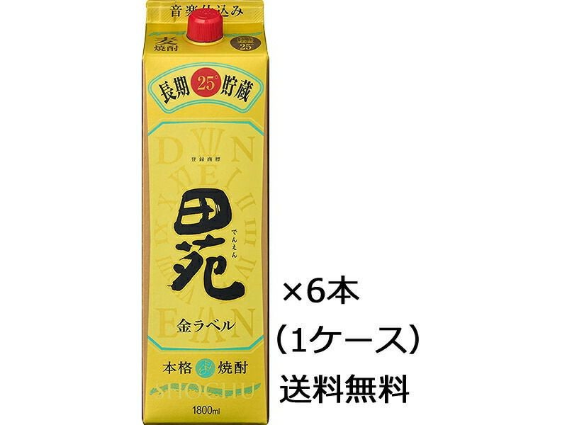 (ケース販売)(送料無料(九州・沖縄除く))田苑 金ラベル 25度 パック 1800ml×6本 (1ケース) 1.8L 麦焼酎