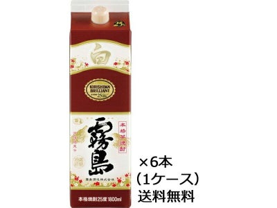 (ケース販売)(送料無料(九州・沖縄除く))霧島酒造 白霧島 チューパック 25度 1.8L 1800ml 6本入(1ケース)のレビューを書く